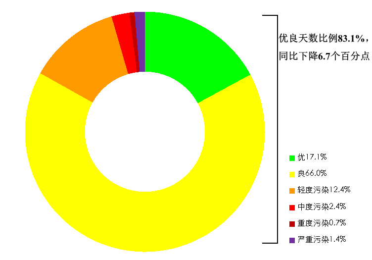 4月,全國339個地級及以上城市平均空氣質量優良天數比例為83.1%,同比下降6.7個百分點;平均重度及以上污染天數比例為2.1%,同比上升0.9個百分點。由沙塵天氣導致的平均超標天數比例為9.7%,其中重度及以上污染天數比例為2.1%。